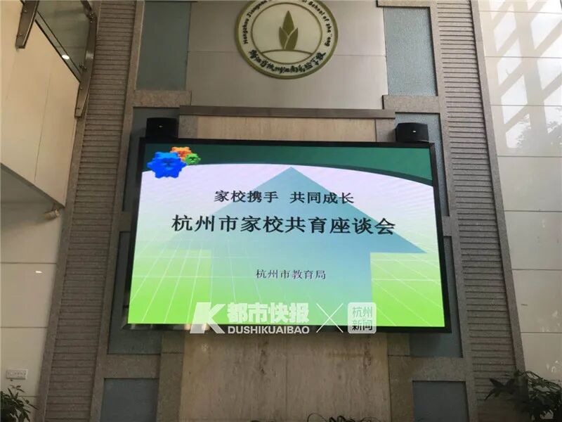 今天下午,杭州市教育局举办“家校携手共同成长——杭州市家校共育座谈会”,邀请了多位家长代表、教师代表、校长代表,以及教育专家、媒体代表,齐聚江南实验学校,一起探讨、交流家校共育,如何减轻学生、家长负担。