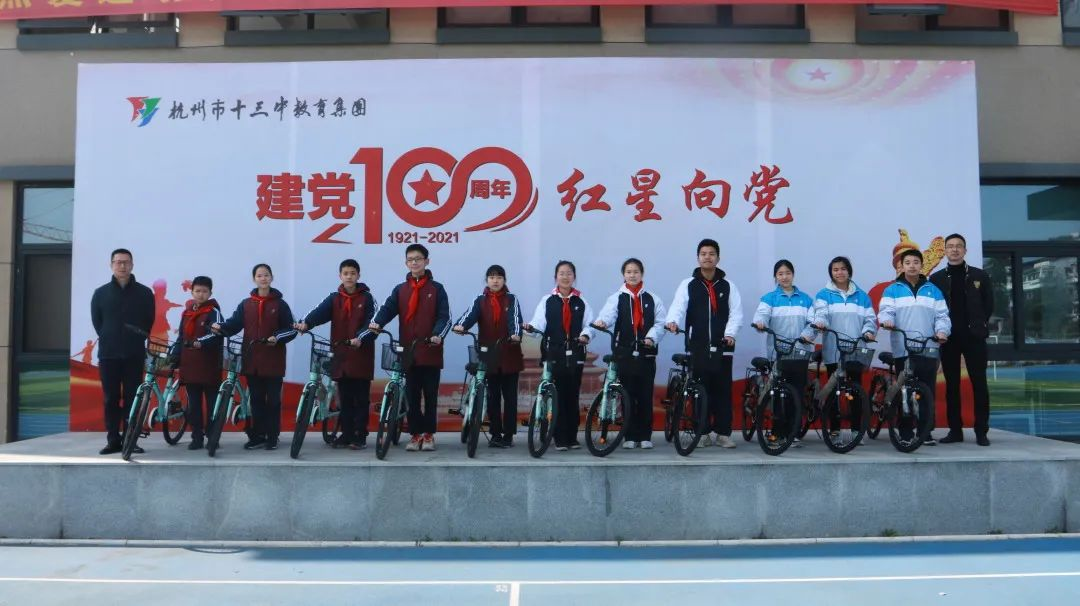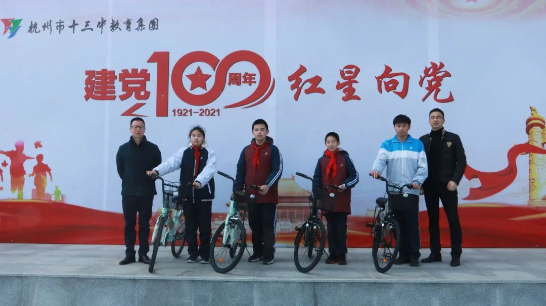 上周,杭州市十三中教育集团的开学典礼结束后,有15名同学获得了一个特殊的奖品——自行车!